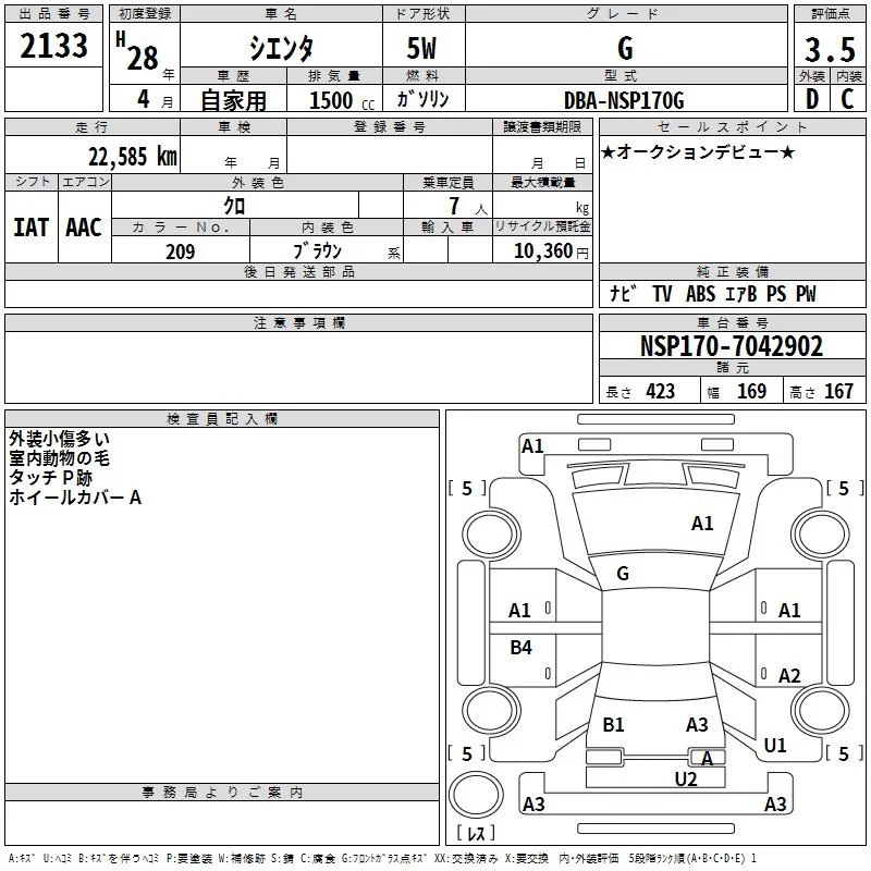 - Кузов: NSP170G