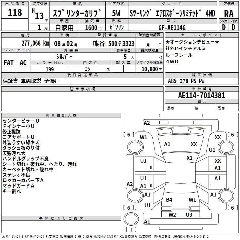 - Кузов: AE114G