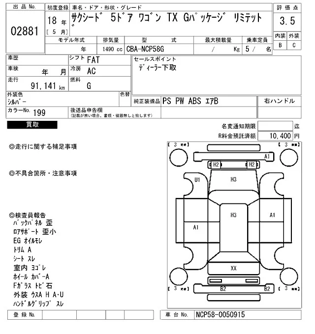 - Кузов: NCP58G