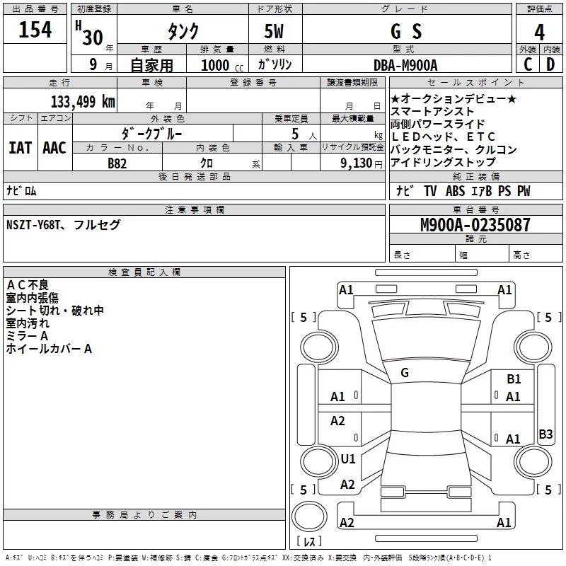 G-T | DBA-M900A | 1KR-VET | FF | CVT | 996cc | 98ps(72kW)/6000rpm | AИ-92 | 1 803 600 | |