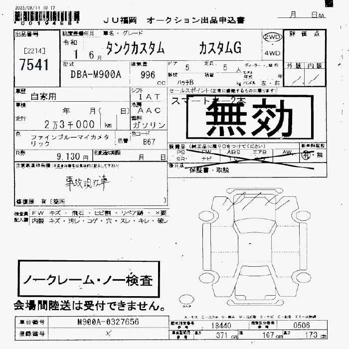 CUSTOM G | DBA-M910A | 1KR-FE | Full-time 4WD | CVT | 996cc | 69ps(51kW)/6000rpm | AИ-92 | 2 046 000 | |