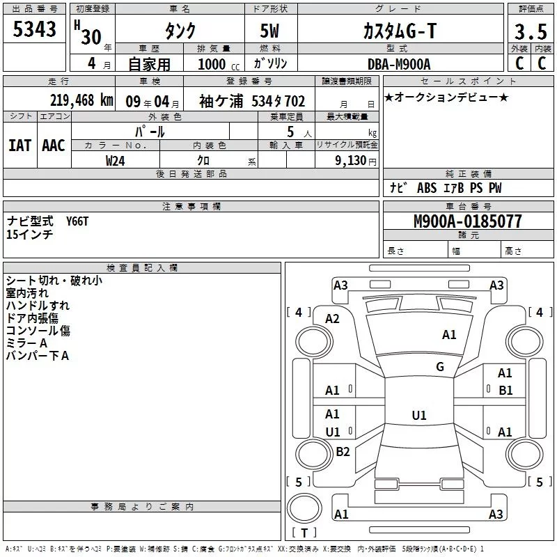 CUSTOM G-T | DBA-M900A | 1KR-VET | FF | CVT | 996cc | 98ps(72kW)/6000rpm | AИ-92 | 1 965 600 | |