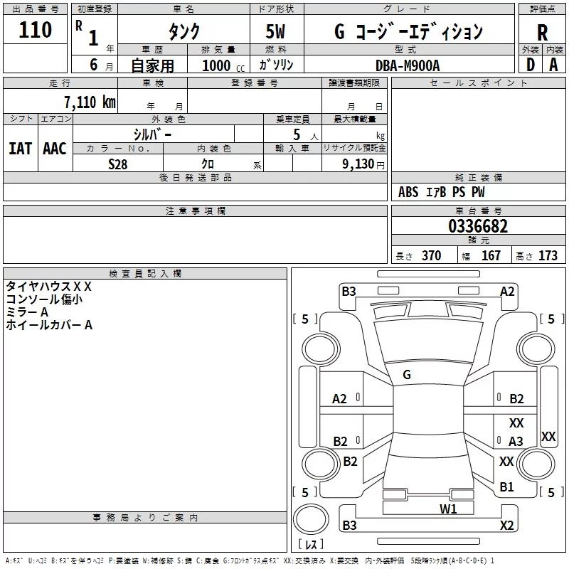 CUSTOM G | DBA-M910A | 1KR-FE | Full-time 4WD | CVT | 996cc | 69ps(51kW)/6000rpm | AИ-92 | 2 046 000 | |