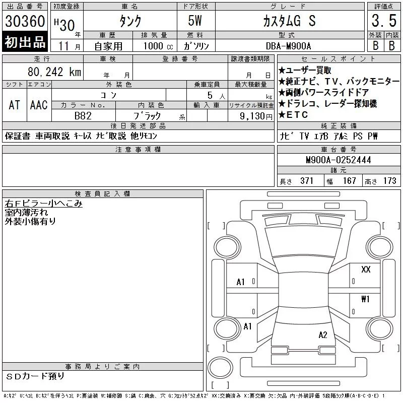 CUSTOM G | DBA-M900A | 1KR-FE | FF | CVT | 996cc | 69ps(51kW)/6000rpm | AИ-92 | 1 836 000 | |
