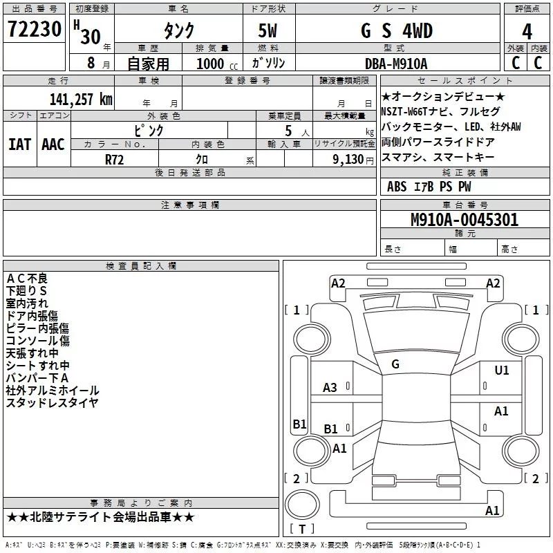 CUSTOM G | DBA-M910A | 1KR-FE | Full-time 4WD | CVT | 996cc | 69ps(51kW)/6000rpm | AИ-92 | 2 008 800 | |