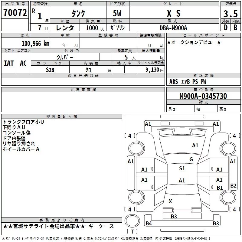 X S | DBA-M900A | 1KR-FE | FF | CVT | 996cc | 69ps(51kW)/6000rpm | AИ-92 | 1 556 500 | |