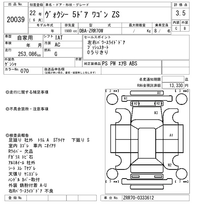 • Кузов: ZRR70W