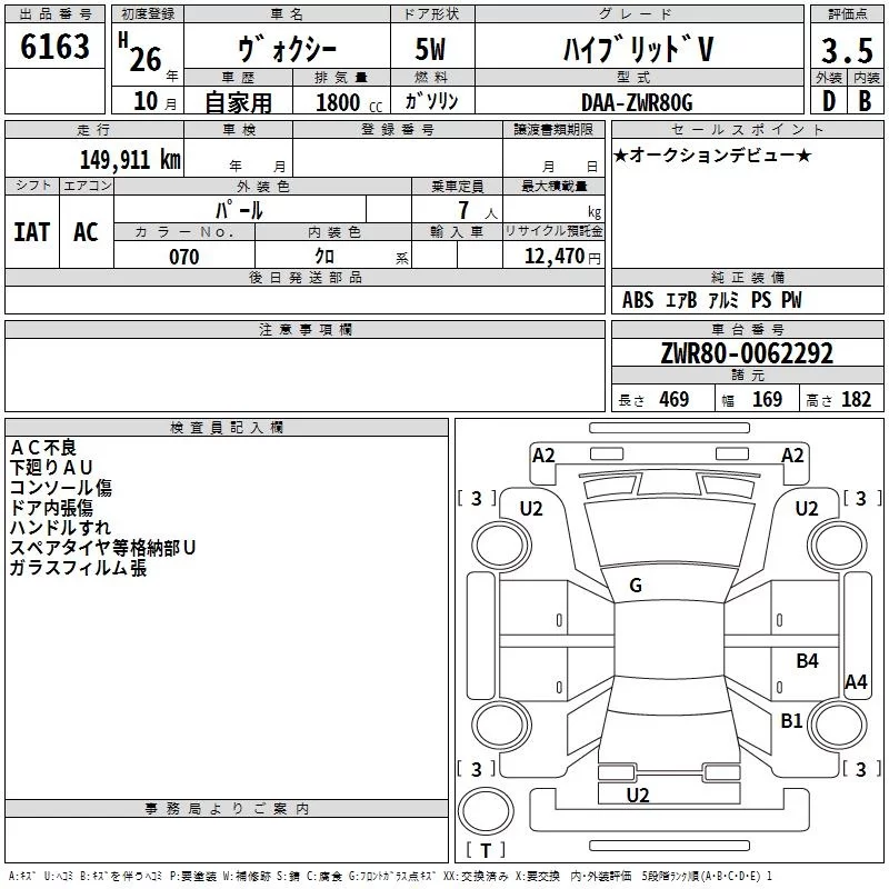 X | DBA-ZRR80G | 3ZR-FAE | FF | CVT | 1986cc | 152ps(112kW)/6100rpm | AИ-92 | 2 437 714 | |