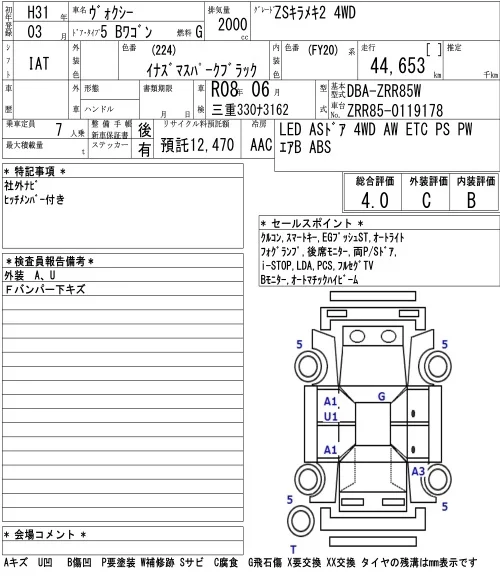X | DBA-ZRR85G | 3ZR-FAE | Full-time 4WD | CVT | 1986cc | 152ps(112kW)/6100rpm | AИ-92 | 2 745 360 | |