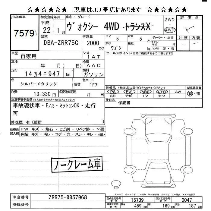 TRANS-X | DBA-ZRR75G | 3ZR-FAE | Full-time 4WD | CVT | 1986cc | 155ps(114kW)/6200rpm | AИ-92 | 2 250 000 | |