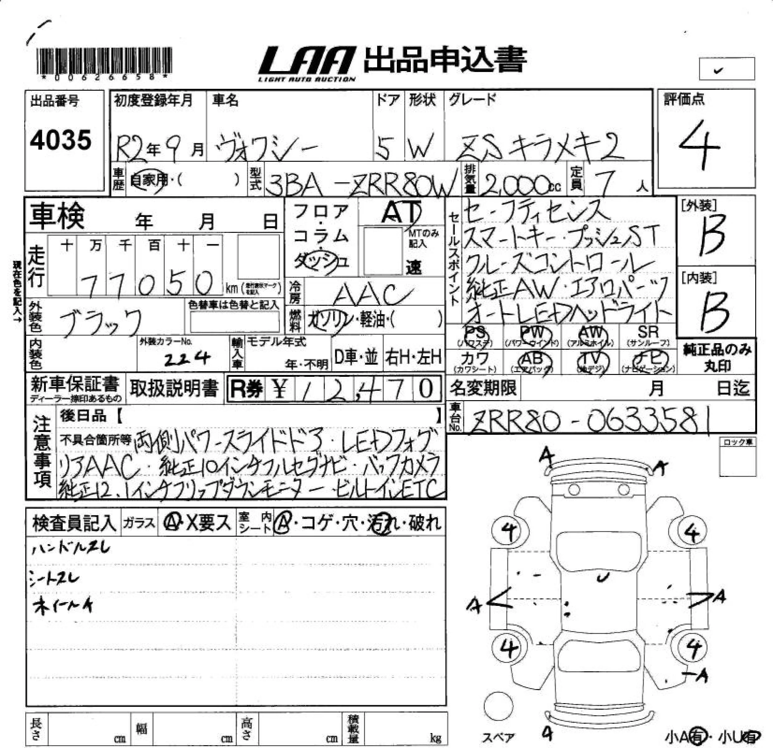ZS KIRAMEKI III | 3BA-ZRR85W | 3ZR-FAE | Full-time 4WD | CVT | 1986cc | 152ps(112kW)/6100rpm | AИ-92 | 3 138 300 | |