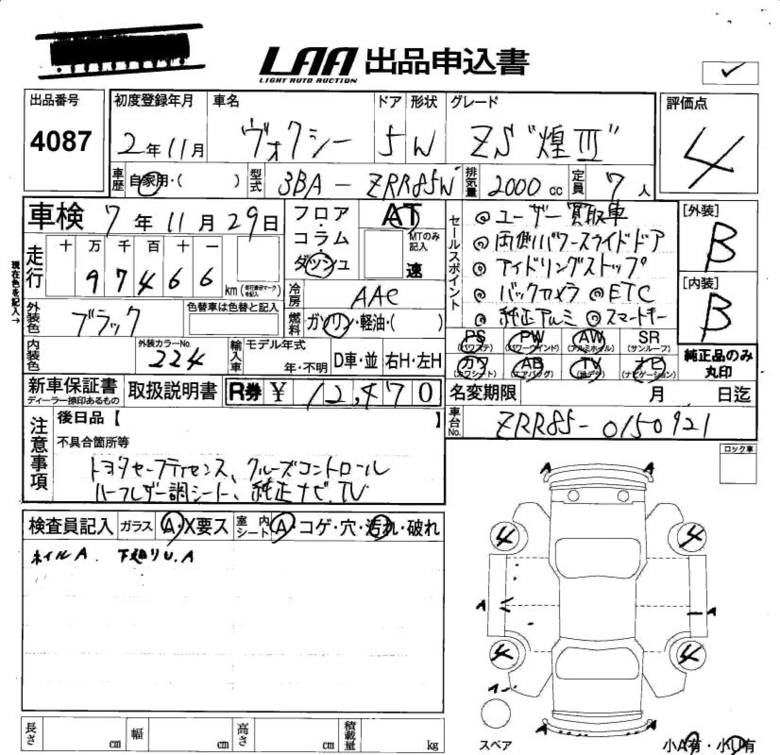 ZS KIRAMEKI III | 3BA-ZRR85W | 3ZR-FAE | Full-time 4WD | CVT | 1986cc | 152ps(112kW)/6100rpm | AИ-92 | 3 107 500 | |