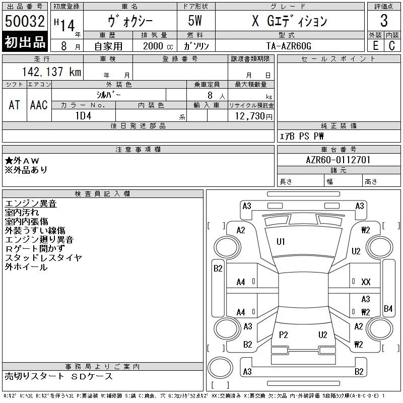 Z KIRAMEKI | TA-AZR60G | 1AZ-FSE(D-4) | FF | 4AT | 1998cc | 152ps(112kW)/6000rpm | AИ-92 | 2 350 000 |