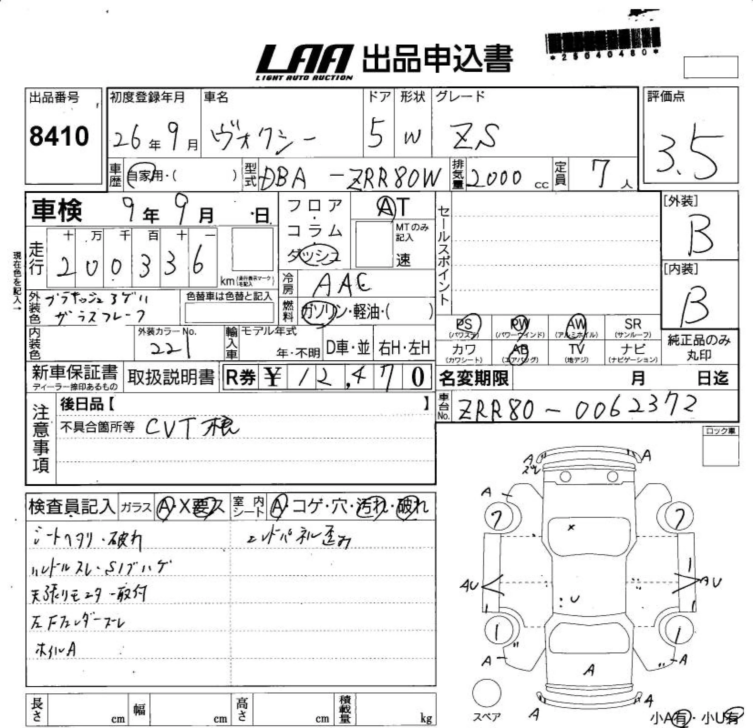 • Кузов: ZRR80W