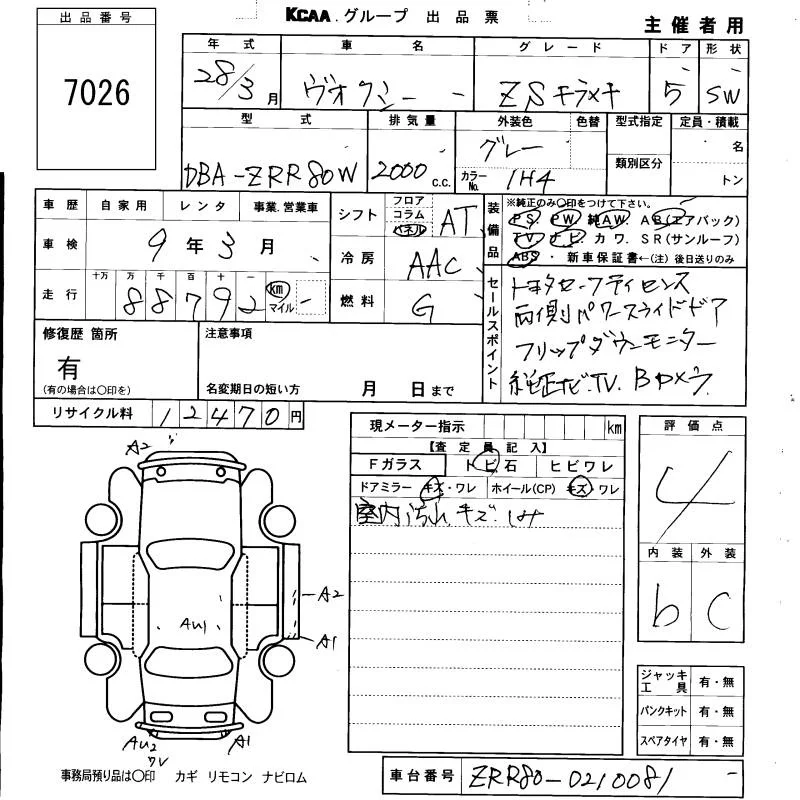 X | DBA-ZRR80G | 3ZR-FAE | FF | CVT | 1986cc | 152ps(112kW)/6100rpm | AИ-92 | 2 630 000 | |