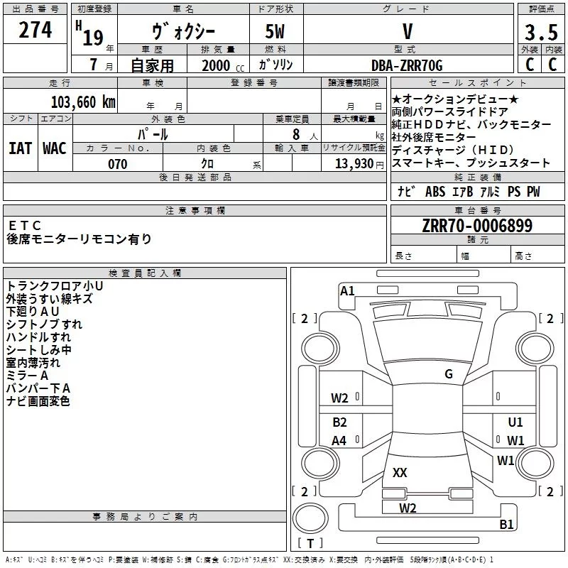 X | DBA-ZRR70G | 3ZR-FE | FF | CVT | 1986cc | 143ps(105kW)/5600rpm | AИ-92 | 2 037 000 | |