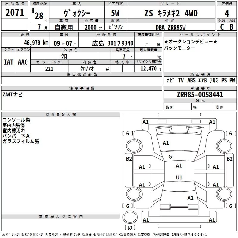 X | DBA-ZRR85G | 3ZR-FAE | Full-time 4WD | CVT | 1986cc | 152ps(112kW)/6100rpm | AИ-92 | 2 821 000 | |