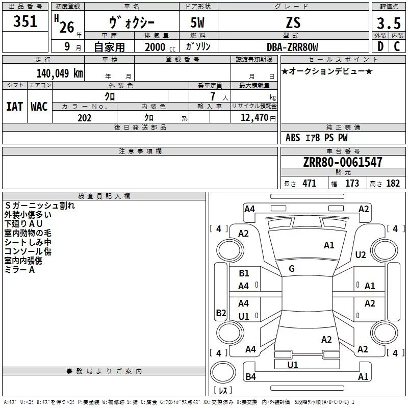 X | DBA-ZRR80G | 3ZR-FAE | FF | CVT | 1986cc | 152ps(112kW)/6100rpm | AИ-92 | 2 370 000 | |