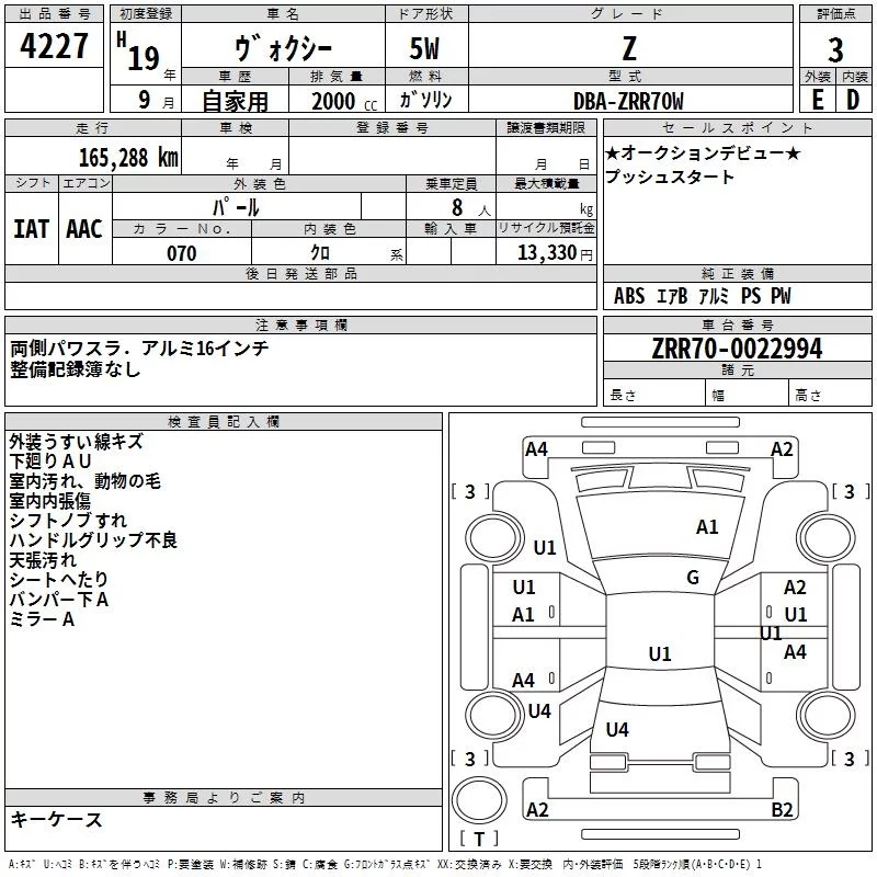 X | DBA-ZRR70G | 3ZR-FE | FF | CVT | 1986cc | 143ps(105kW)/5600rpm | AИ-92 | 2 037 000 | |