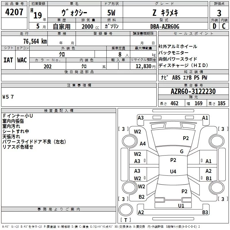 X | DBA-ZRR75G | 3ZR-FE | Full-time 4WD | CVT | 1986cc | 140ps(103kW)/5600rpm | AИ-92 | 2 257 500 | |