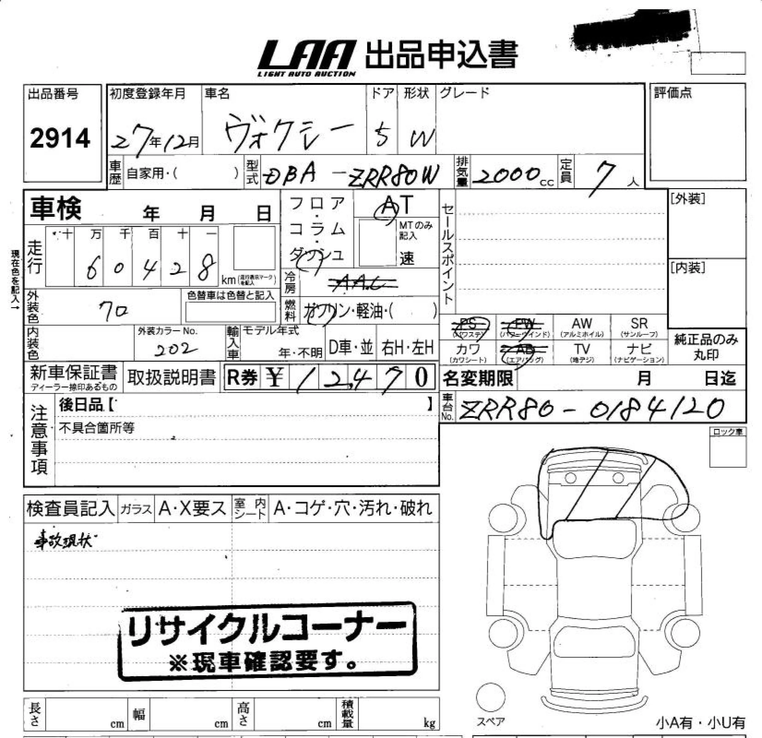 - Кузов: ZRR80W