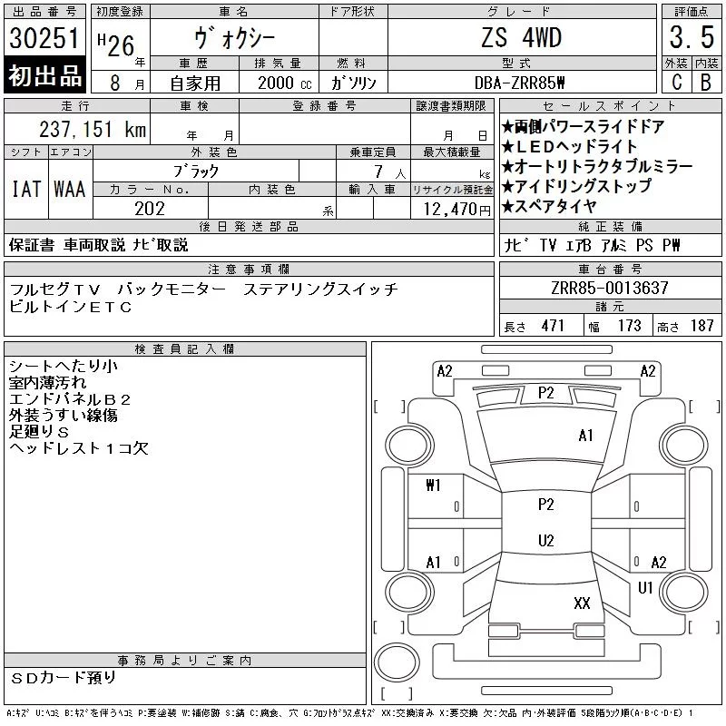 X | DBA-ZRR80G | 3ZR-FAE | FF | CVT | 1986cc | 152ps(112kW)/6100rpm | AИ-92 | 2 437 714 | |