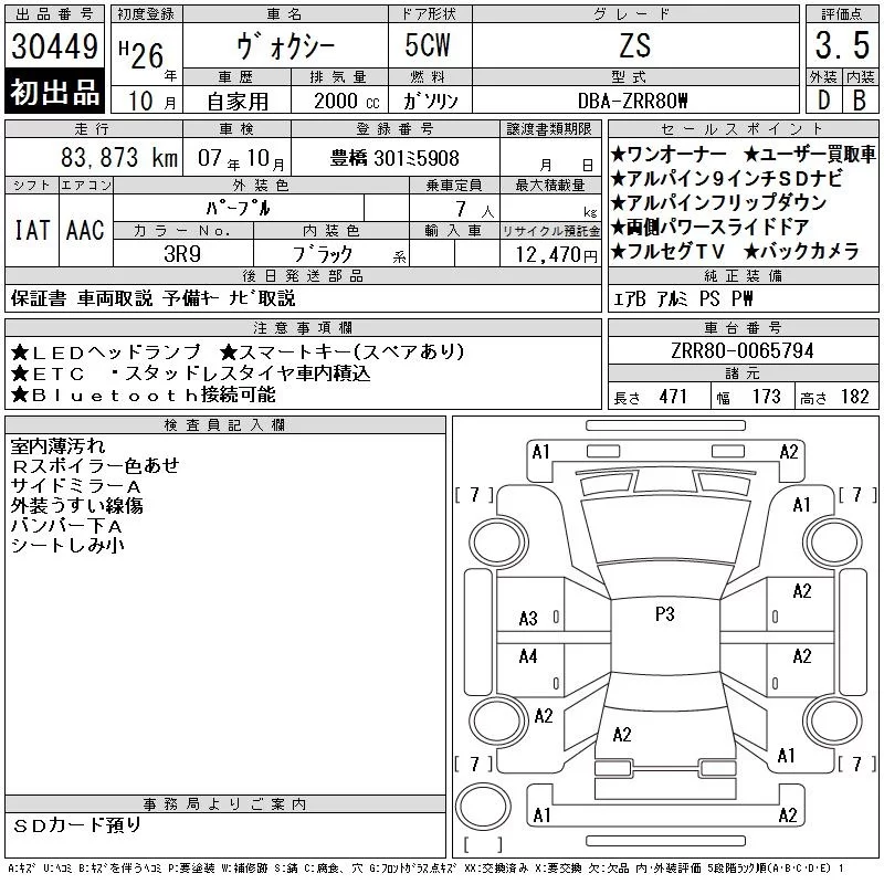 X | DBA-ZRR80G | 3ZR-FAE | FF | CVT | 1986cc | 152ps(112kW)/6100rpm | AИ-92 | 2 437 714 | |