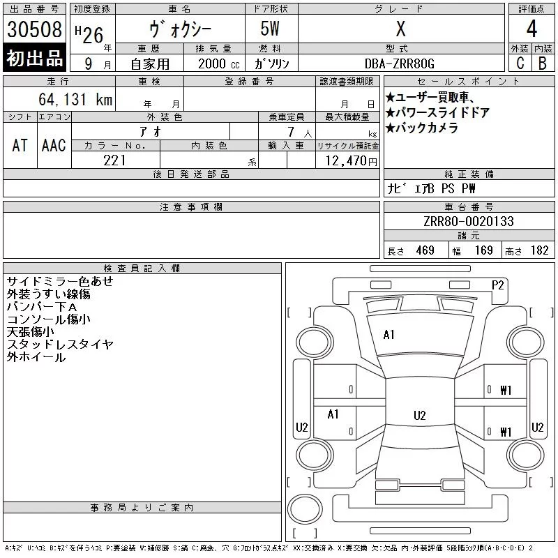 X | DBA-ZRR80G | 3ZR-FAE | FF | CVT | 1986cc | 152ps(112kW)/6100rpm | AИ-92 | 2 370 000 | |