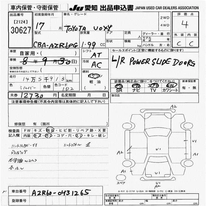X | DBA-AZR60G | 1AZ-FSE(D-4) | FF | CVT | 1998cc | 155ps(114kW)/6000rpm | AИ-92 | 2 295 000 | |