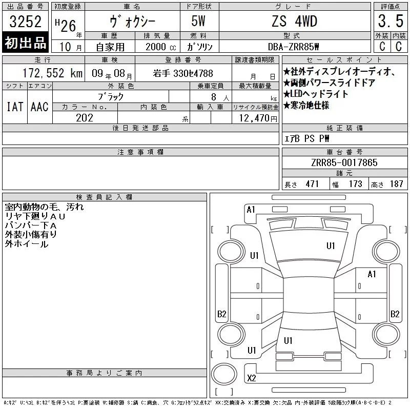 X | DBA-ZRR85G | 3ZR-FAE | Full-time 4WD | CVT | 1986cc | 152ps(112kW)/6100rpm | AИ-92 | 2 600 000 | |