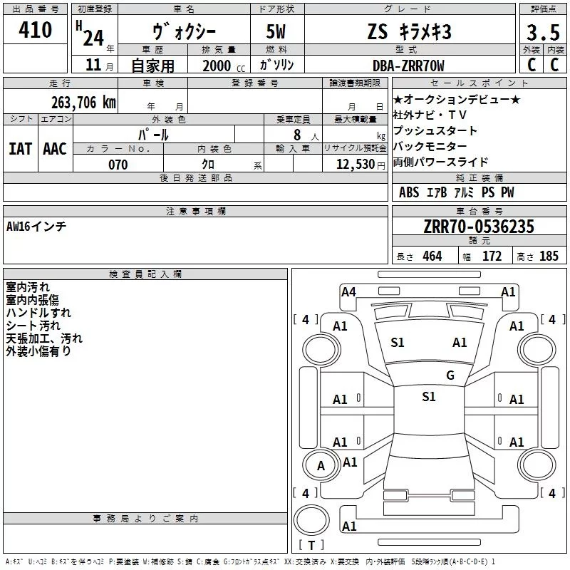 ZS KIRAMEKI III | DBA-ZRR70W | 3ZR-FAE | FF | CVT | 1986cc | 158ps(116kW)/6200rpm | AИ-92 | 2 620 000 |