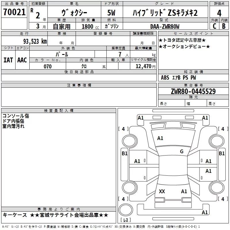 ZS KIRAMEKI III | 3BA-ZRR85W | 3ZR-FAE | Full-time 4WD | CVT | 1986cc | 152ps(112kW)/6100rpm | AИ-92 | 3 138 300 | |