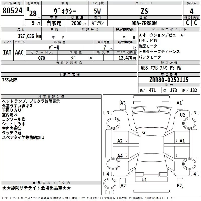 ZS KIRAMEKI | DBA-ZRR80W | 3ZR-FAE | FF | CVT | 1986cc | 152ps(112kW)/6100rpm | AИ-92 | 2 820 763 | |