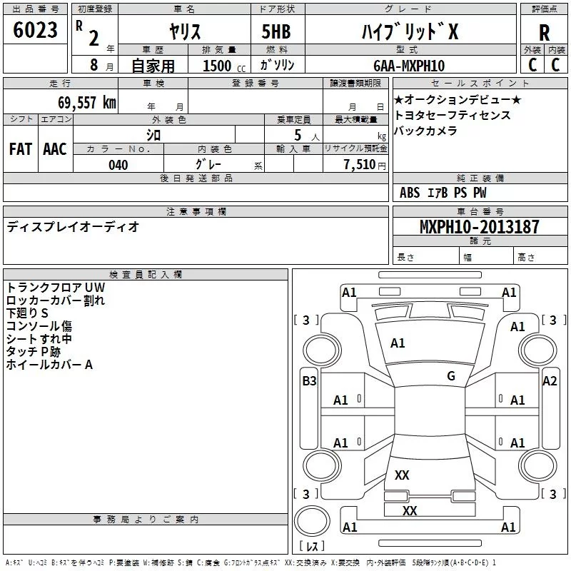 HYBRID G | 6AA-MXPH10 | M15A-FXE | FF | CVT | 1490cc | 91ps(67kW)/5500rpm | AИ-92 | 2 130 000 | |