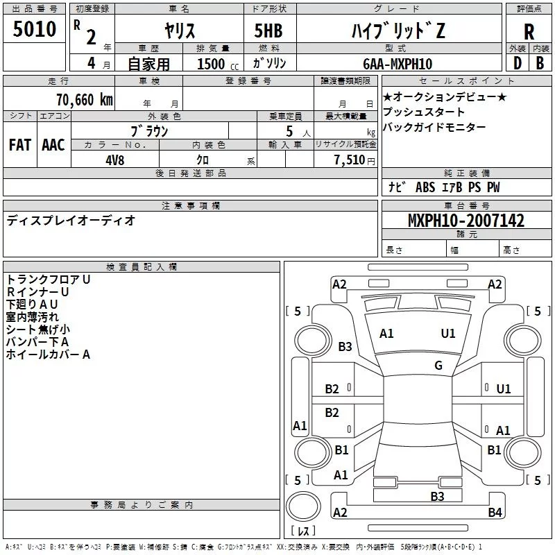 HYBRID G | 6AA-MXPH10 | M15A-FXE | FF | CVT | 1490cc | 91ps(67kW)/5500rpm | AИ-92 | 2 130 000 | |