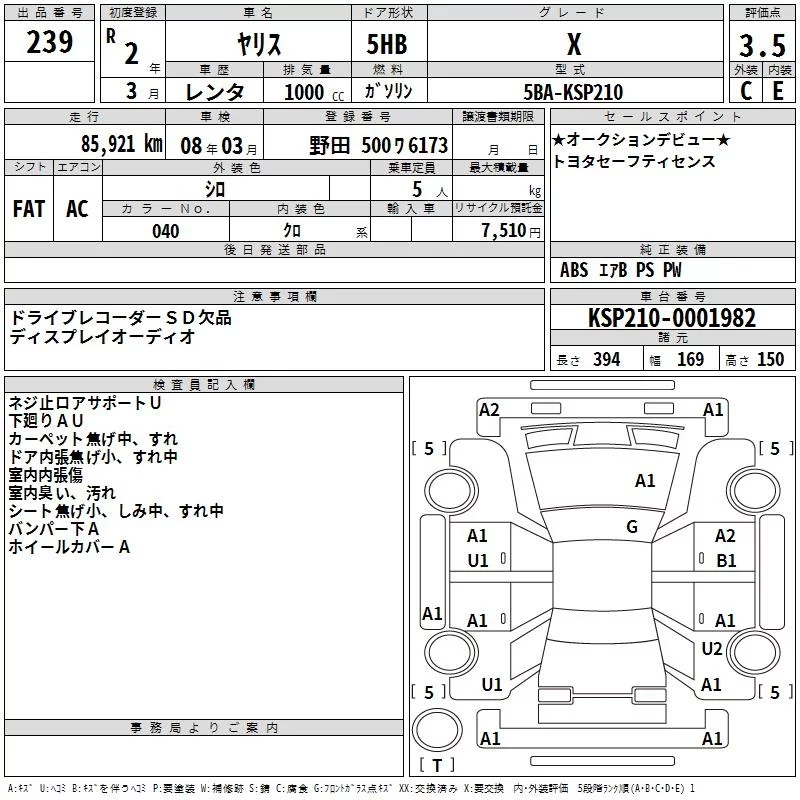 G | 5BA-KSP210 | 1KR-FE | FF | CVT | 996cc | 69ps(51kW)/6000rpm | AИ-92 | 1 613 000 | |