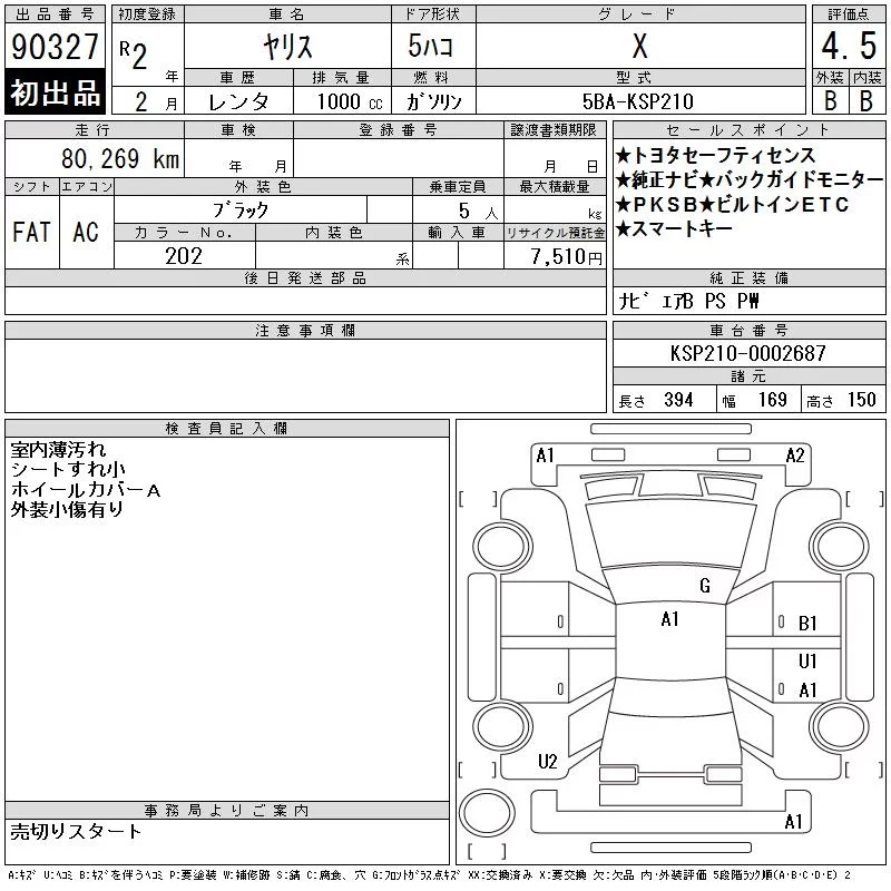 X B PACKAGE | 5BA-KSP210 | 1KR-FE | FF | CVT | 996cc | 69ps(51kW)/6000rpm | AИ-92 | 1 395 000 |