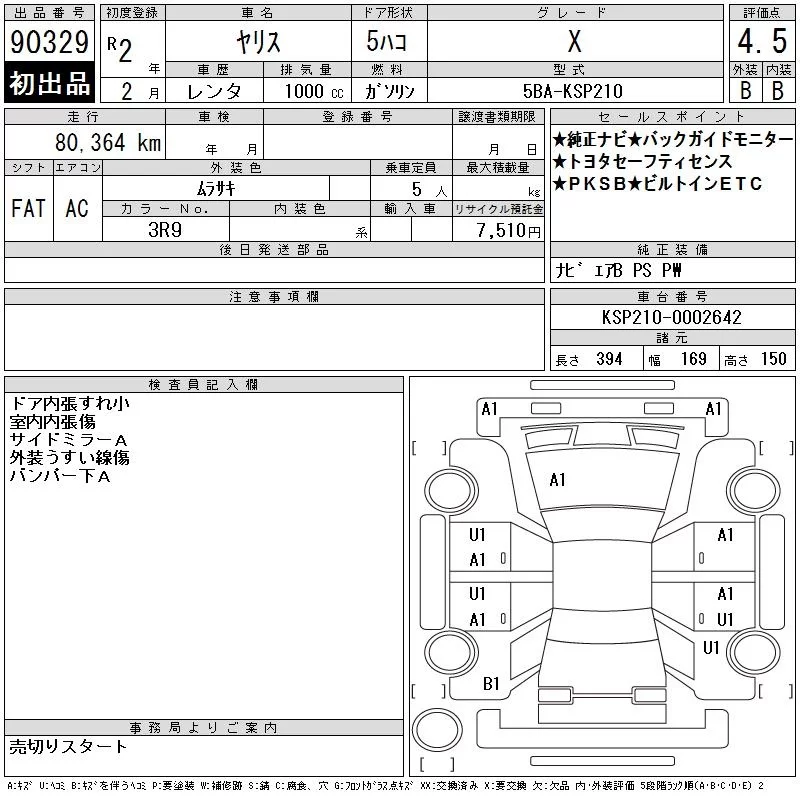 X B PACKAGE | 5BA-KSP210 | 1KR-FE | FF | CVT | 996cc | 69ps(51kW)/6000rpm | AИ-92 | 1 395 000 |