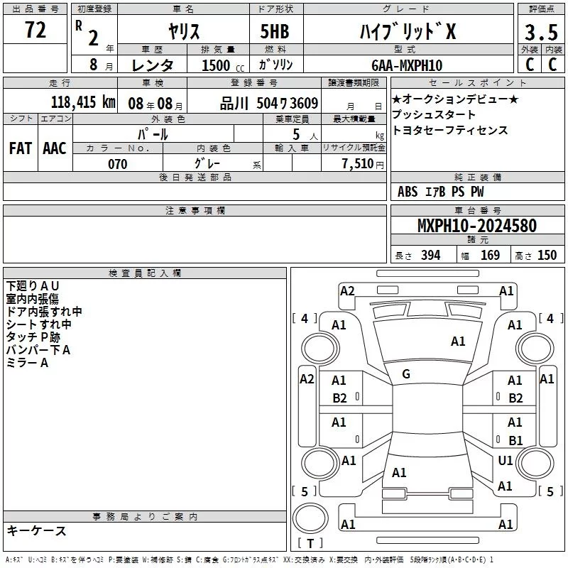 HYBRID G | 6AA-MXPH10 | M15A-FXE | FF | CVT | 1490cc | 91ps(67kW)/5500rpm | AИ-92 | 2 130 000 | |