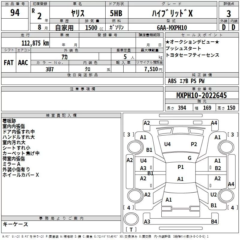 HYBRID G | 6AA-MXPH10 | M15A-FXE | FF | CVT | 1490cc | 91ps(67kW)/5500rpm | AИ-92 | 2 130 000 | |