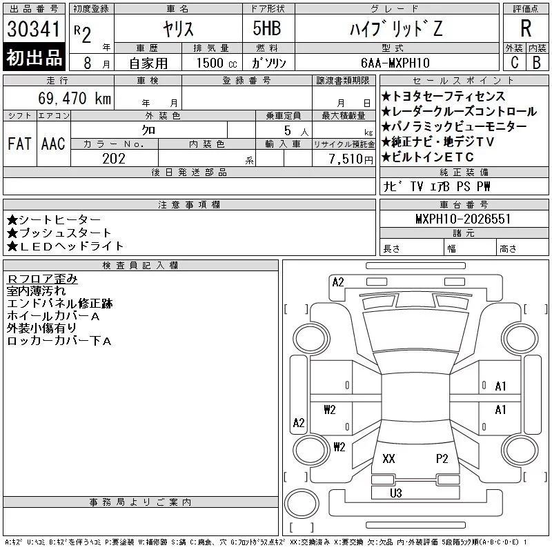 HYBRID G | 6AA-MXPH10 | M15A-FXE | FF | CVT | 1490cc | 91ps(67kW)/5500rpm | AИ-92 | 2 130 000 | |