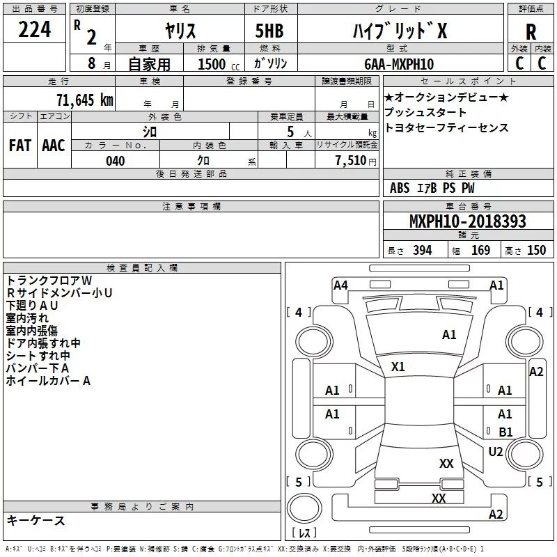 HYBRID G | 6AA-MXPH10 | M15A-FXE | FF | CVT | 1490cc | 91ps(67kW)/5500rpm | AИ-92 | 2 130 000 | |
