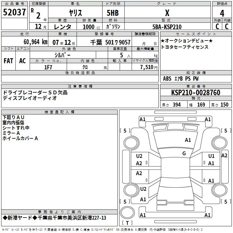 X | 5BA-KSP210 | 1KR-FE | FF | CVT | 996cc | 69ps(51kW)/6000rpm | AИ-92 | 1 455 000 | |