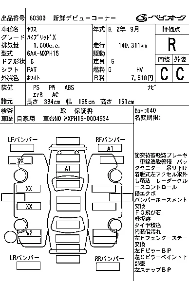 HYBRID G | 6AA-MXPH10 | M15A-FXE | FF | CVT | 1490cc | 91ps(67kW)/5500rpm | AИ-92 | 2 130 000 | |
