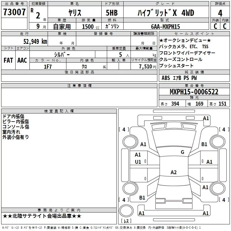 HYBRID G | 6AA-MXPH10 | M15A-FXE | FF | CVT | 1490cc | 91ps(67kW)/5500rpm | AИ-92 | 2 130 000 | |