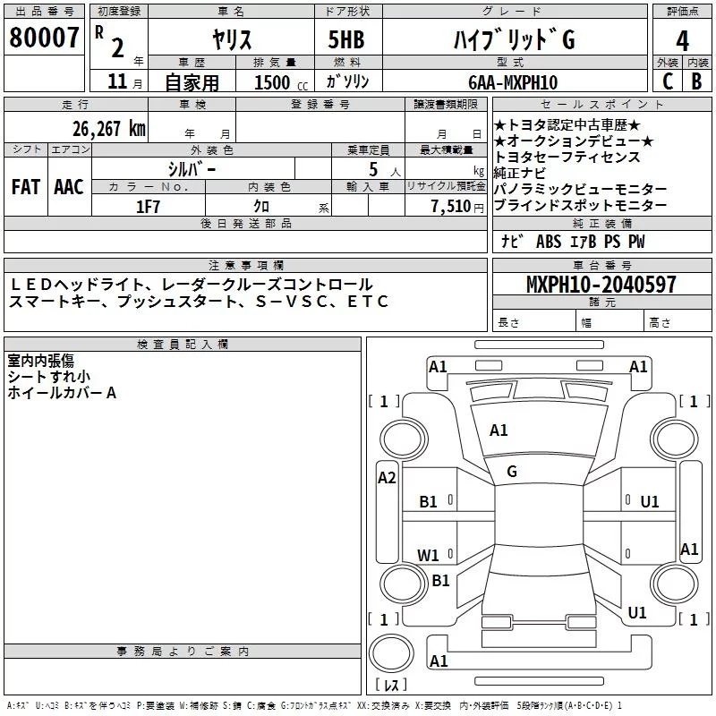 HYBRID G | 6AA-MXPH10 | M15A-FXE | FF | CVT | 1490cc | 91ps(67kW)/5500rpm | AИ-92 | 2 130 000 | |