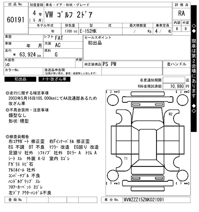 W3Ремонт/покраска (очень заментные, должно быть перекрашено)
