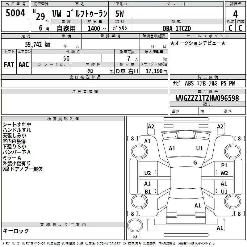 Volkswagen GOLF TOURAN 2017 • 1346448 ₽ под ключ из Японии