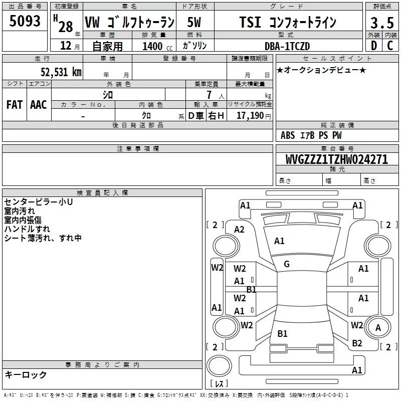 TSI HIGHLINE | DBA-1TCZD | CZD | FF | 7AT | 1394cc | 150ps(110kW)/5000~6000rpm | AИ-95 | 3 769 000 | |