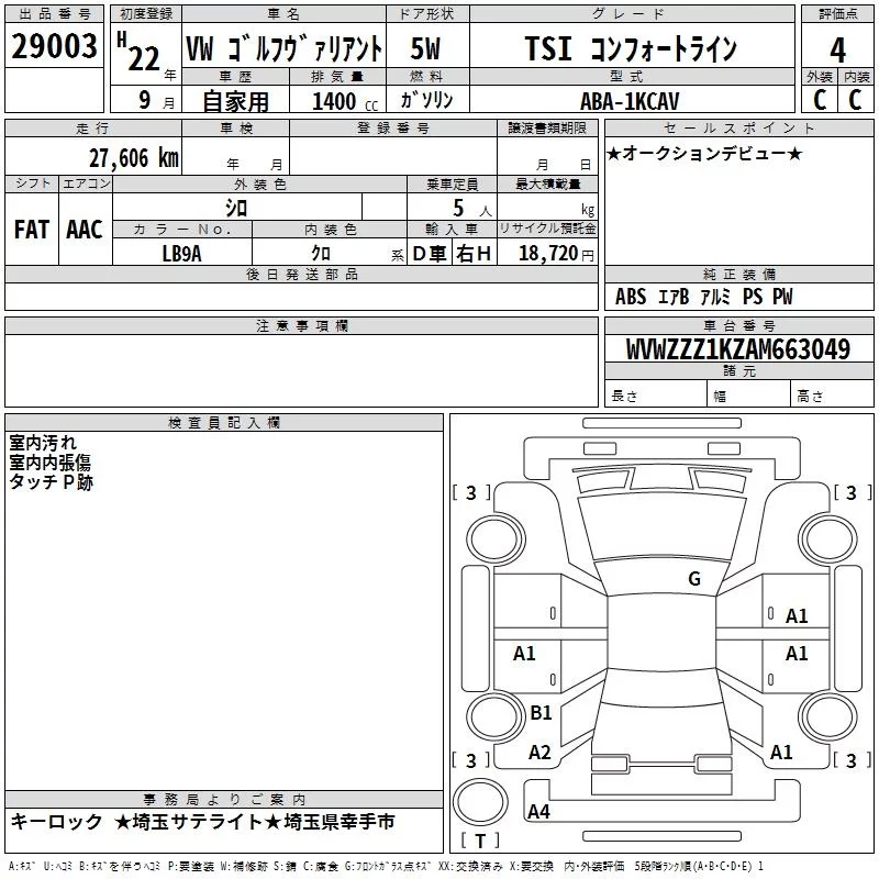 TSI COMFORTLINE | DBA-1KCAV | CAV | FF | 7AT | 1389cc | 160ps(118kW)/5800rpm | AИ-95 | 3 250 000 |